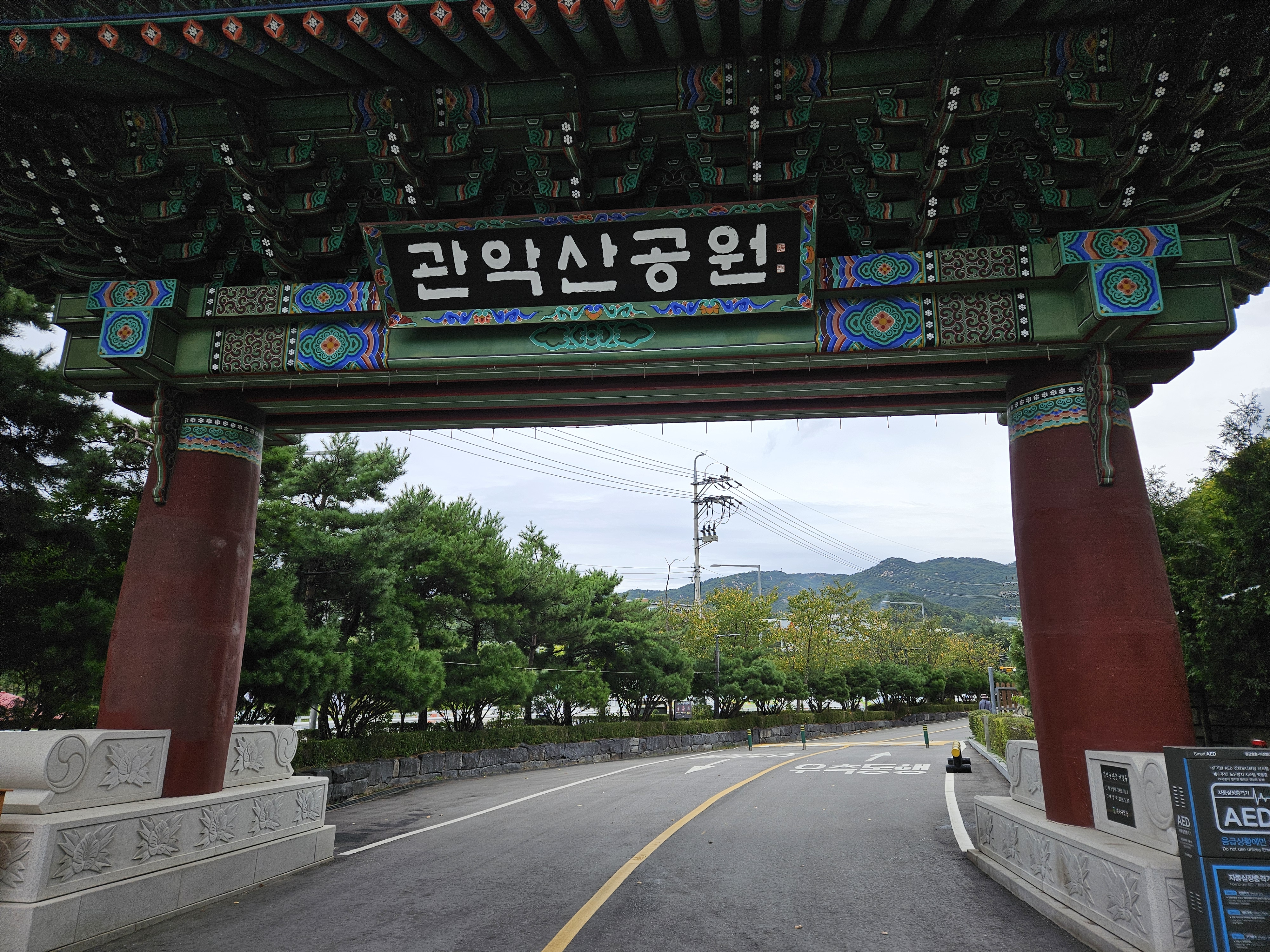 바로 앞에 보이는 관악산 공원의 문으로
